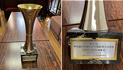 | 私が歯科園医を務める大阪市立菅南幼稚園が本年度(令和7年度)学校歯科保健功労内閣総理大臣表彰にて選考の結果、内閣総理大臣賞を受賞しました。 全国で2校園のうちの1園です。 |
